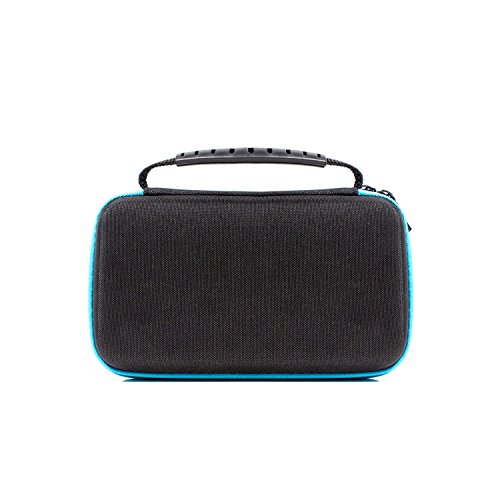 Orzly Funda para Nintendo 3DS XL (Original) o New 3DS XL (Nueva) - Funda Dura de Viaje para Llevar la Consola con Ranuras para Juegos y Bolsillo con Cremallera – Azul sobre Negro