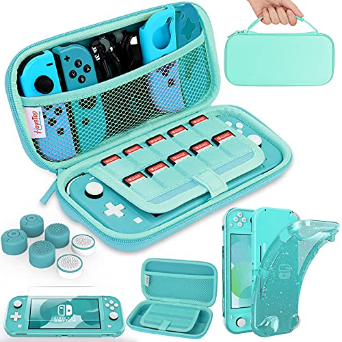 HEYSTOP Funda para Nintendo Switch Lite con Carcasa Switch Lite + Protector de Pantalla + Funda Tarjeta de Juegos + Tapas de Agarre para el Pulgar - Verde