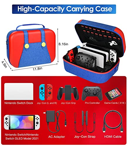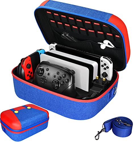 ivoler Funda Compatible con Nintendo Switch y Switch OLED 2021, Estuche Dura de Transporte de Fundas Lujo, maletín de Viaje con 18 Cartuchos de Juegos para Switch Console & Accesorios