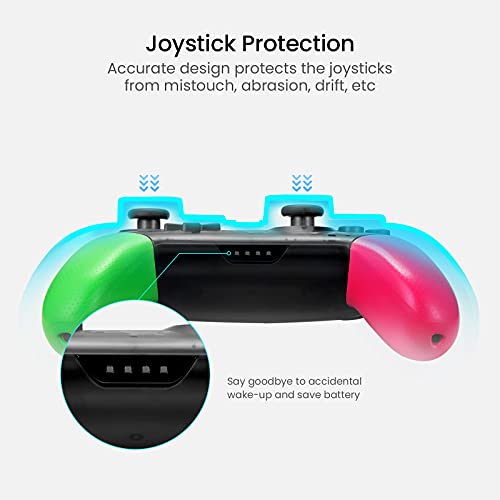 - 【Protector de joystick】 El diseño de corte preciso se adapta a las curvas de su Pro Controller sin agregar volumen. Llevar mando de juegos sin ningún tipo de protección de joystick acelerará el proceso de envejecimiento. Esta carcasa protectora juega un papel muy importante en la prevención del despertar y la deriva del joystick durante el viaje.