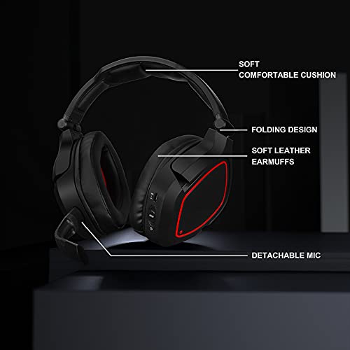 HUHD HW-933U Auriculares Inalámbricos para Juegos, Altavoz con vibración 4D, Auriculares Gaming para PS4 PS5 PC Nintendo Switch, Negro