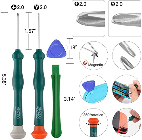 - ?【Duraderos Magnéticos Destornilladores】 kit está equipado con destornillador magnético Y2.0 Tri-Wing y destornillador magnético Phillips +2.0, que están hechos de acero de calidad industrial que es mucho más duradero y más duro. Cambie en cualquier momento según sus necesidades, tornillos de adsorción magnética débiles. Preciso para colocar y quitar los tornillos sin problemas y sin tira. (Nota: al desmontar el Joycon, tenga cuidado de desenroscar los tornillos "Y" para evitar deslizamientos)