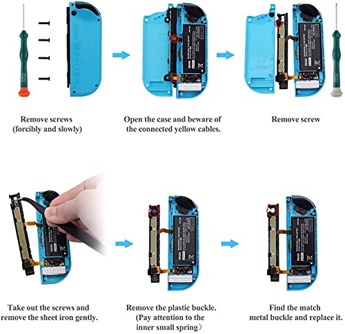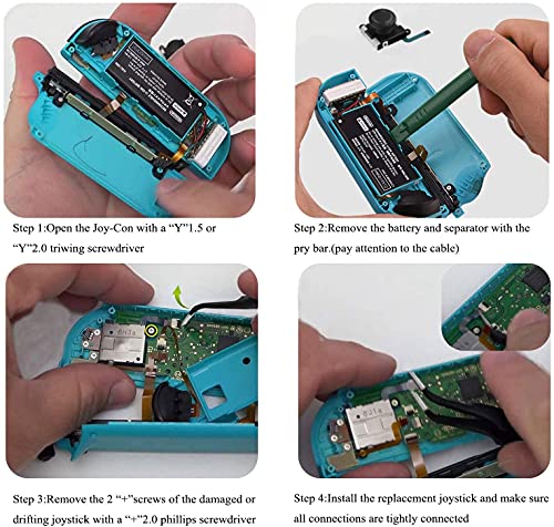- ?️【100% Garantía Calidad】 Le recomendamos que vea el tutorial completo en YouTube antes de reemplazarlo. Para problemas de calidad del producto, proporcionamos servicios de devolución e intercambio incondicionales. NOTA: Calibra el joystick usando la configuración de Nintendo Switch después de la instalación. Si tiene alguna pregunta o requisito con respecto a las herramientas de reemplazo joy con de los controladores de interruptor, no dude en contactarnos.