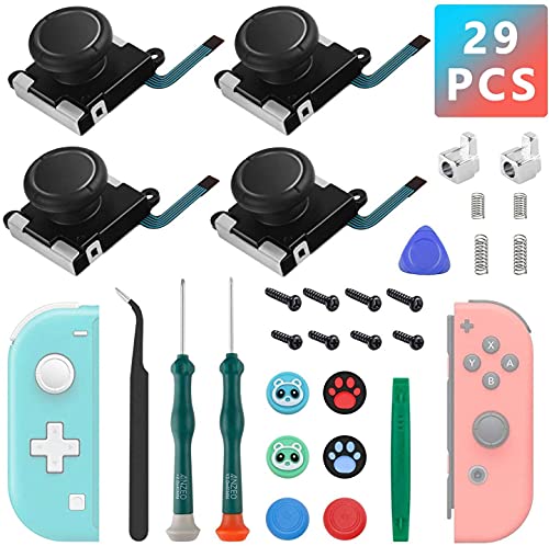 Arozxin Joystick Analógico 3D para Joycon Nintendo Switch/Lite, Joy-Con Thumbstick Reemplazo Derecho e Lzquierdo Joysticks con Destornilladores Tornillo Pinzas Herramientas de Reparación - 29 Piezas