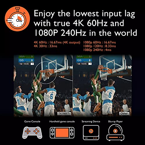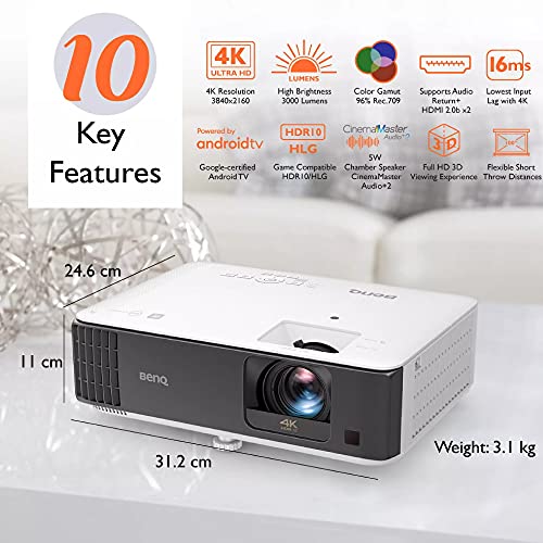 BenQ TK700STi Proyector Gaming 4K HDR, 3000 lúmenes ANSI, Baja latencia de 16ms, 2 HDMI, Android TV, Tiro Corto, Blanco, Negro