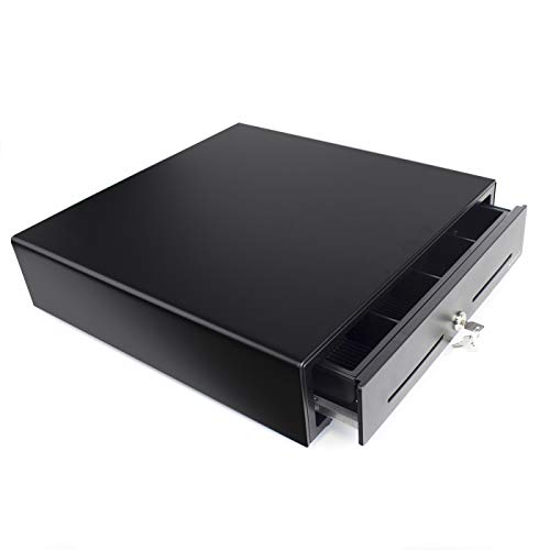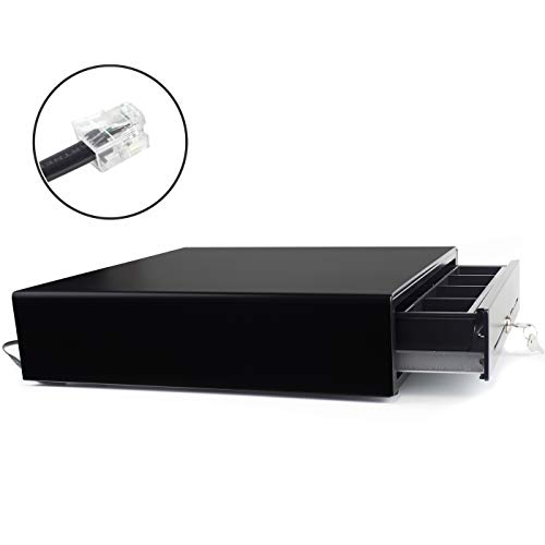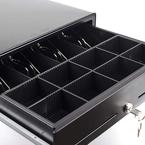- ✦ Construcción resistente ✦ El cajón portamonedas automático negro tiene un acabado resistente y compacto de acero inoxidable con varios compartimentos y un tamaño perfecto, 41x42x10cm, para colocarlo en cualquier lugar de tu negocio. Su sistema automático de apertura lo hace aún más cómodo y práctico a la hora de trabajar. Se integra fácilmente con POS e impresoras compatibles a través de su conector RJ-11.
