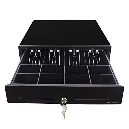 Phoenix Technologies - Cajón Portamonedas Eléctrico Automático para Dinero en Efectivo con Cerradura 4 Compartimentos de Billetes y 8 de Monedas
