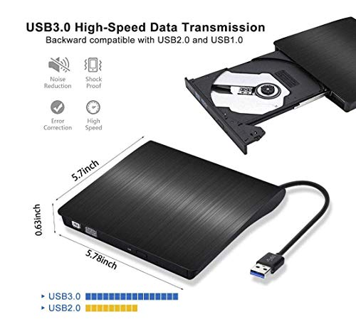 - 【Reproductor DVD Completo】Unidades DVD externas ultra slim portátil se pueden utilizar para instalar software, reproduzca películas/música, realice copias de seguridad de sus datos, grabe sus preciosos recuerdos y guarde fotos. ¡Trabaja con este súper disco externo ahora!