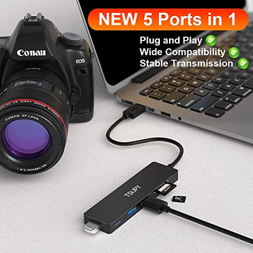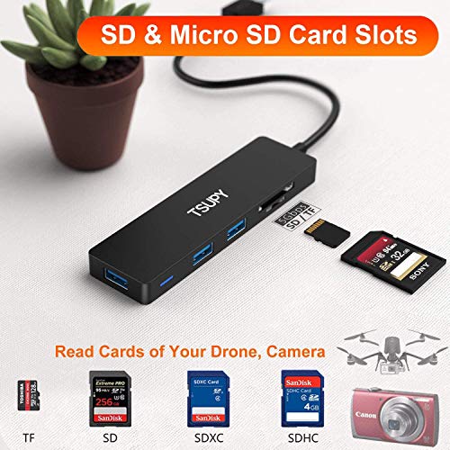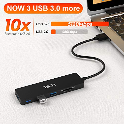 TSUPY HUB USB 3.0, Adaptador USB 3.0 con 3 Puertos USB 3.0 y Lector de Tarjetas SD/Micro SD,Transferencia de Datos 5Gbps para PC y Chromebook, Surface Pro 3, iMac de Mac OS, Linux y Windows XP y más
