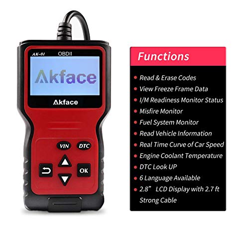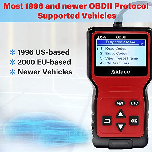 Akface OBD2 Diagnosis Maquina Coche Scanner con Lectura y Borrado de Códigos de Error para, y Compatible con Protocolos OBDII
