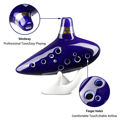 Ohuhu 12 Agujero Nueva Ocarina de Cerámica, Leyenda de Zelda, 12 Hoyo Alto C Zelda Ocarinas, Flauta Instrumento con Soporte Blanco, Cuerda, Bolsa, Instrucciones