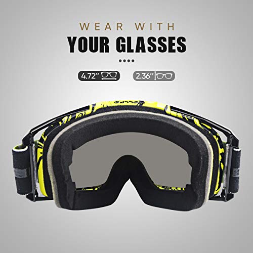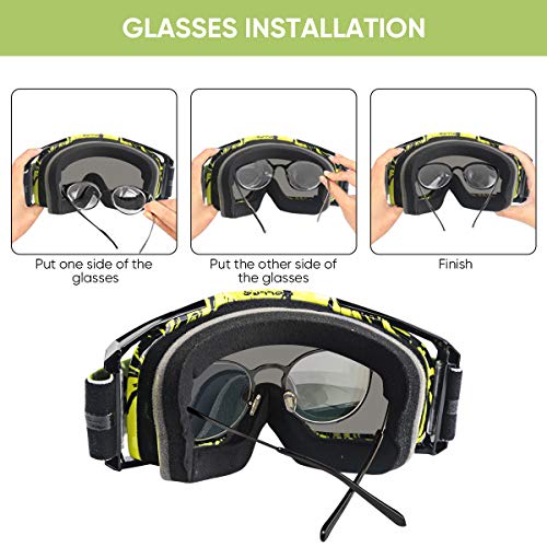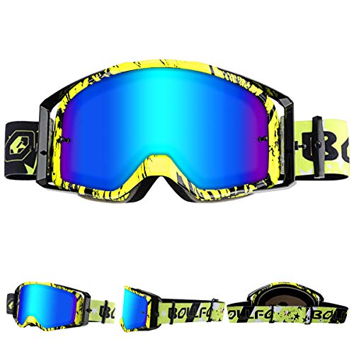 WholeFire Gafas de Motocicleta, ATV Dirt Bike Off Road Racing MX Riding Goggle, UV400 para Ciclismo, Motocross para Deportes al Aire Libre, Amarillo