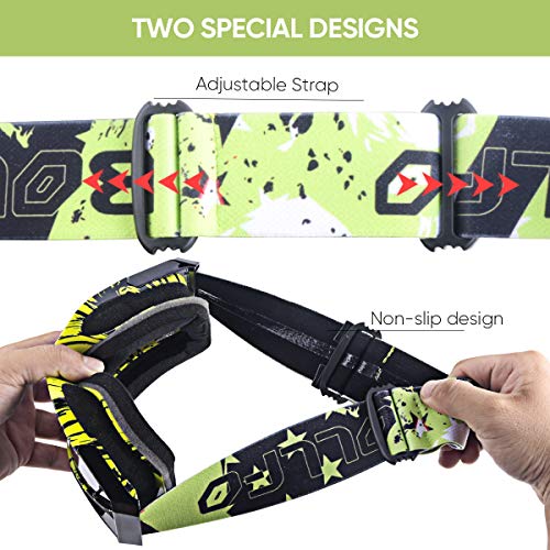 - 【Ventilación Circular y Correa Ajustable】: Distribución de agujeros circulares alrededor de la lente para ayudar a la circulación del aire interno, hasta cierto punto juega un efecto antivaho. Tanto el tamaño máximo ajustable como el tamaño mínimo son más grandes que la correa de ajuste de hebilla única.