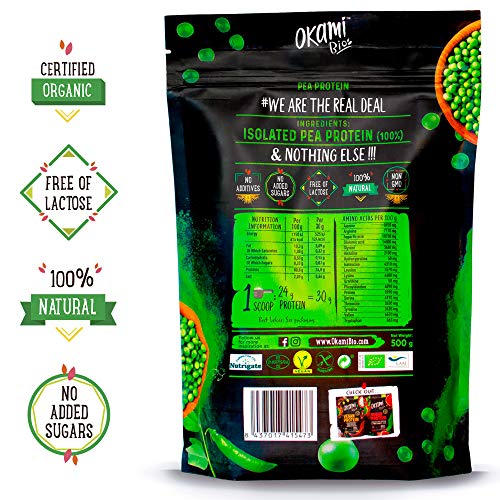 Okami Bio | Proteina De Guisante Bio | Proteína Vegana | Rica en Aminoácidos Esenciales | Sin Azúcar ni Aditivos | Con Alto Contenido de Proteína | 500 g