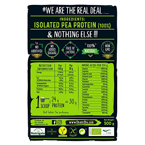 - ✅CRECIMIENTO DE MASA MUSCULAR: Esta proteína de Aislado de Guisantes Okami Bio favorece el crecimiento muscular. Ideal para combinar con una dieta vegana para deportistas.