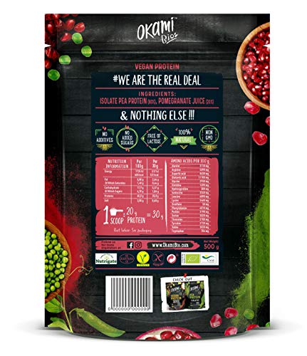 Okami Bio | Proteina De Guisante Con Granada Bio | Proteína Vegana | Aporta Aminoácidos Esenciales | 500gr.