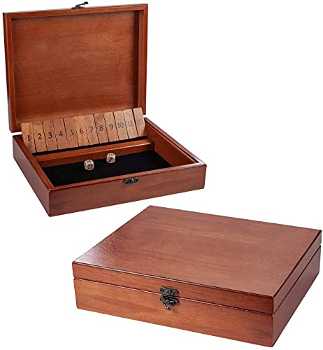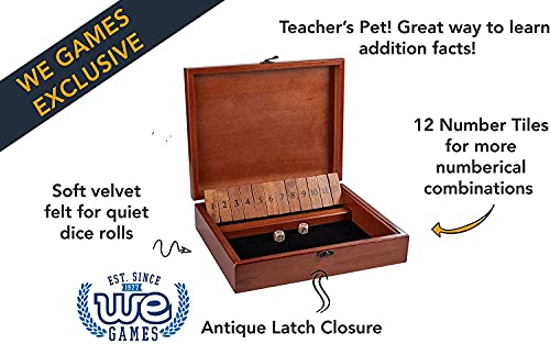 - WE Games Shut the Box Game with 12 Numbers in an Old World Styled Wood Box with a Lid and a Brass Latch