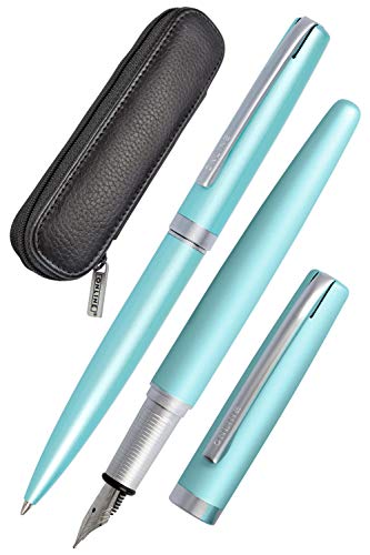 Online Eleganza - Juego de escritura (incluye bolígrafo, pluma estilográfica, estuche de piel auténtica), color turquesa