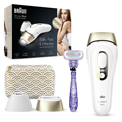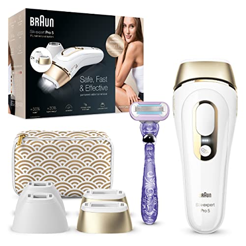 Braun Silk-expert Pro 5 Depiladora Mujer Luz Pulsada IPL, Cabezal de Precisión y Maquinilla de Afeitar Venus, Alternativa a la Depilación Láser en Casa, Regalos Originales para Mujer, PL 5137, Blanco