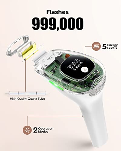 - 【990,000 Flashes】esta depiladora de luz tiene 999.000 flashes, que es el valor máximo en estos productos. No necesitas comprar ningún cartucho de repuesto para la depiladora porque dura alrededor de 20-40 años.