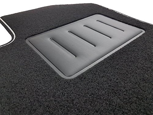 - Alfombrillas a medida en moqueta punzonada de excelente calidad, color negro, base engomada granular antideslizante, ribete perimetral en tela bicolor negra con ribete en gris claro que resalta la forma y lo hace deportivo y elegante, dotada de cinta antideslizante en todo el perímetro de la alfombrilla y de todas las piezas que forman el juego de su coche, protección de goma en el lado del conductor para proteger las zonas más sometidas a desgaste
