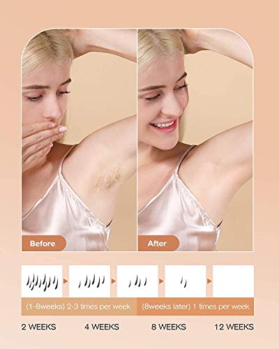 - 【Dispositivo de Depilación Eficaz】Los estudios clínicos numerosos y rigurosos sobre este dispositivo de maquina depilacion demuestran la eficacia y la fiabilidad del producto. Resulta ser seguro y confiable para la depilación corporal y facial. Durante tan breves como 8 a 12 semanas, 90 por ciento de los usuarios que usan este dispositivo han visto una disminución del crecimiento de pelo rápida. (Nota: El efecto de la depilación varía según los colores de pelo y tonos de piel de los usuarios.)