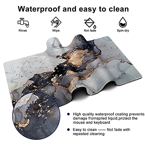 - 【Recubrimiento resistente al agua】 Cuando salpique líquido sobre la almohadilla, simplemente limpie con una toalla. Es fácil de limpiar y no retrasará su trabajo o juego. FÁCIL DE LIMPIAR Previene eficazmente el daño accidental del líquido derramado. Lave la alfombrilla del mouse, si es necesario, para mantener un aspecto limpio y ordenado de la configuración de su computadora.