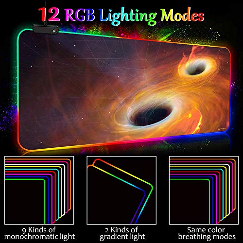- ★ 12 modos de iluminación RGB: la alfombrilla de ratón para juegos DORRISO RGB tiene 12 modos de iluminación RGB, que incluyen verde, azul, púrpura, rojo, cian, amarillo, blanco, magenta y naranja. 2 tipos de luz degradada, modo de respiración del mismo color (bucle automático). Fibra superbrillante: la iluminación personalizable Chroma proporciona una apariencia distintiva, proporciona colores y efectos visualmente deslumbrantes.