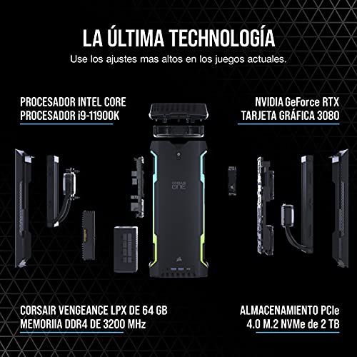 - Gran potencia, tamaño compacto: El CORSAIR ONE está preparado para usar los ajustes más altos en los juegos actuales, con todo el rendimiento de vanguardia de un PC para juegos.