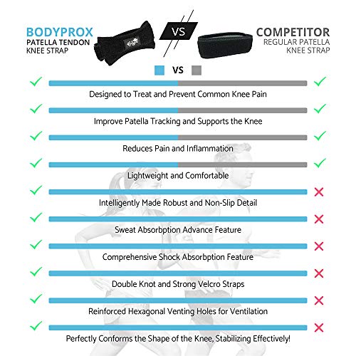 - Cómoda: la correa para la rodilla de Bodyprox proporciona apoyo para el tendón rotuliano con acolchado de gel de silicona integrado para mayor comodidad. La correa de neopreno suave se ajusta con cierre de velcro y es muy cómoda de llevar. El acolchado proporciona un buen soporte para la rodilla especialmente cuando estás caminando con una inclinación hacia arriba o hacia abajo.
