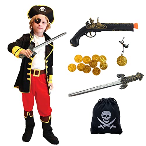 Ecloud Shop Disfraz de pirata con accesorios de pirata Sword Pistol Kids Pirate Theme Disfraz Set Suministros de juego de rol para niños, talla L