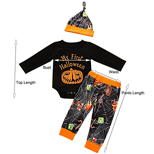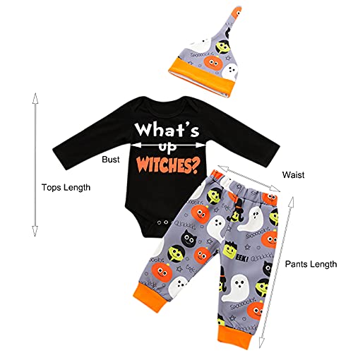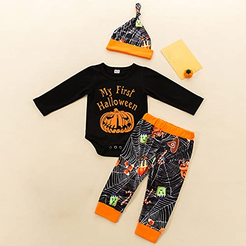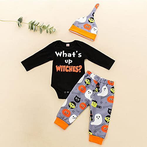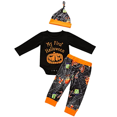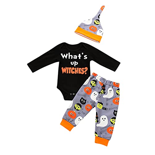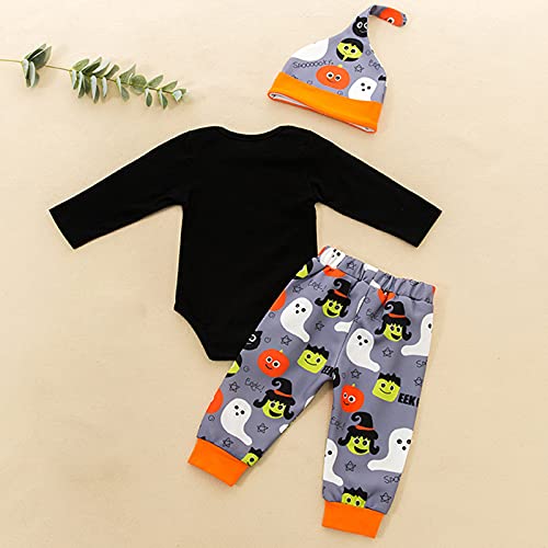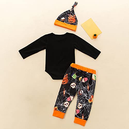 K-Youths 3Pcs Ropa Infantil Estampada De Dibujos Animados Traje BáSico De Manga Larga para Bebé Calavera Y Tibias Cruzadas Kids Mameluco Bolsa Pedo Ropa + PantalóN + Traje De Sombrero