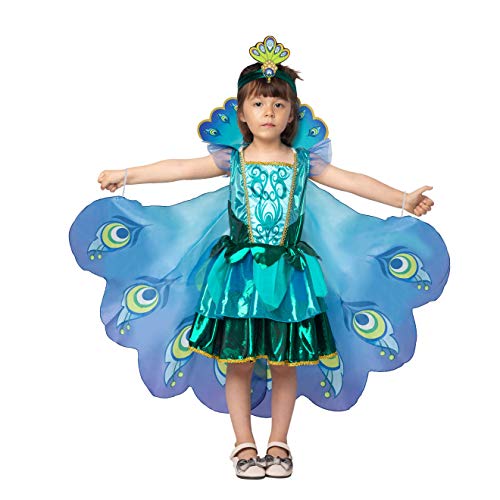 Spooktacular Creations Peacock Dress with Feather Wings and Headband for Girls Halloween Costume and Animal Costumes for Kids (Medium ( 8- 10 yrs))