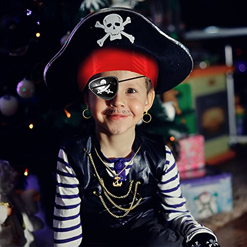 - Combinación rica: los accesorios de disfraz de pirata de Halloween incluyen 1 pieza de corbata pirata, 1 pieza de parche pirata en el ojo, 1 pieza de pendiente de aro dorado y 1 pieza de collar de cadena con colgante dorado, 4 piezas en total, lo que le permite usarlos juntos o separados para crear diferentes looks