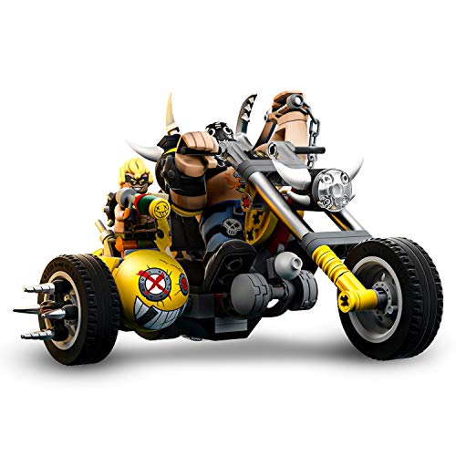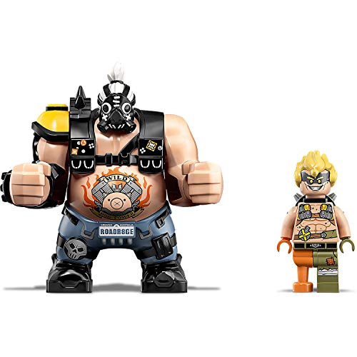 LEGO Overwatch - Junkrat y Roadhog, Set de Construcción inspirado en el videojuego, Figura de acción, Incluye moto Chopper y cartel de Junkertown (75977)
