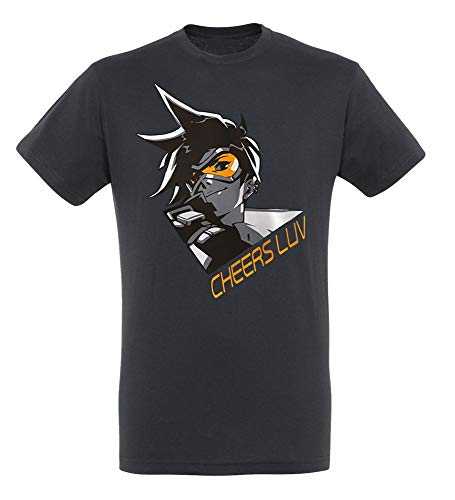 ABYstyle Overwatch Tracer Cheers Luv - Camiseta para hombre, algodón, gris L