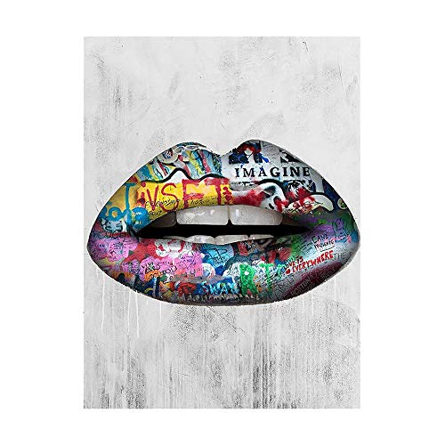 Stephen Painting & Calligraphy - Creative Color Print Lips Canvas Painting Personality Flower Diamond Lips Temptation Posters Living Room Bedroom Art Home Decor - by 1 PCs