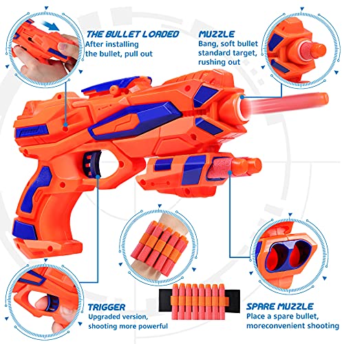 - 2 Pcs de Pistola de Juguete para Niños - La pistola de dardos tiene los accesorios ricos. 2 pistolas de flecha + 80 dardos de espuma, 2 gafas, 2 muñequeras de bala, 2 máscaras. Conviértete en el chico más genial en la guerra de juegos de disparos.