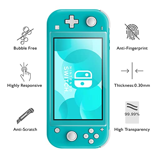 - [Protector de pantalla premium y agarre para el pulgar] - Cobertura completa HD, diseño súper delgado y resistente, el protector de pantalla Switch Lite ofrece la máxima sensibilidad de pantalla táctil y protege sus ojos. 6 pares de tapas de agarre para el pulgar con puntos táctiles de silicona, protegen completamente tu Switch Lite durante el juego.