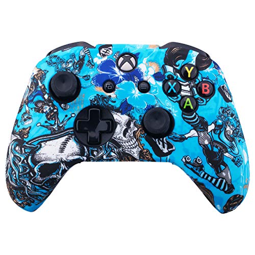 YoRHa Impresión Caucho de Silicona Funda Skin Case Carcasas Piel para Xbox One S/X Mando Controller x 1 (Bruja) Con Agarres para el Pulgar Thumb Grip x 10