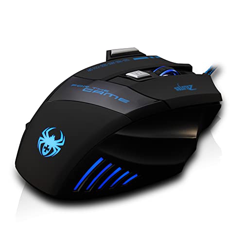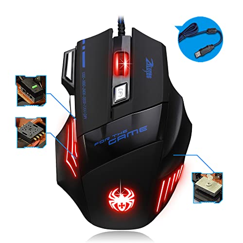 Zelotes Ratón Gaming con Cable, Ratón para Juegos Ergonómico, 7200DPI , 7 Botones Ratón Óptico para PC,Mac,Negro