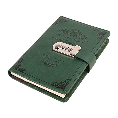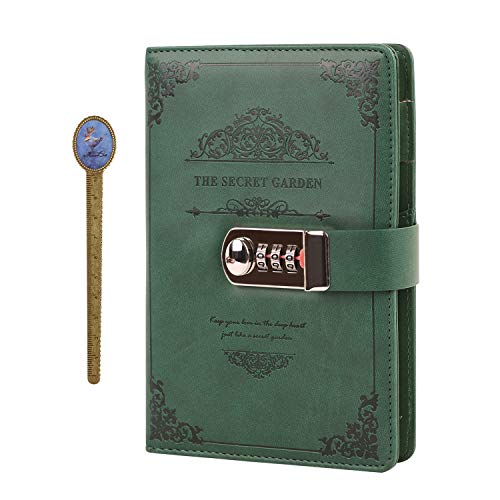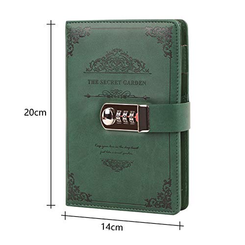 Cuaderno con diseño retro de libro de magia, páginas a color, candado con código, para notas, viajes, proyectos, color verde
