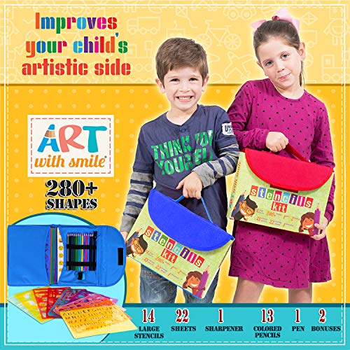 - PLANTILLAS PARA NIÑOS Y NIÑAS: Mantenlos ocupados por horas con juegos creativos y educativos. Este kit de Art with Smile viene con 14 plantillas temáticas, lápices de color, papel con bordes y más. Un sinfín de resultados creativos en sólo un juguete.