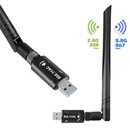 Yizhet Antena de Adaptador USB WiFi 1200Mbps USB 3.0 WiFi Adapter 5dBi Receptor WiFi Dual Band 5.8G/2.4G Compatible con Windows XP/7/8/Vista, Linux