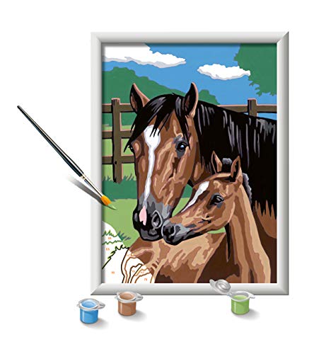 - Gran diversión para pintar con los motivos favoritos de los niños: el caballo con potro hace que los ojos de los niños brillen y, por lo tanto, es el regalo ideal para pequeños y grandes artistas