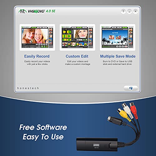 - Guarde Video de Cintas & Cámara & VHS en el Ordenador - Digitalice VHS, Mini DV, VHS-C, Hi8 u otras cintas de video analógicas con cable de transmisión compuesta (rojas, blancas, amarillas) o S-Video y compártalas fácilmente con sus amigos y familiares. Archive sus preciosos memorias en el disco duro de su PC.