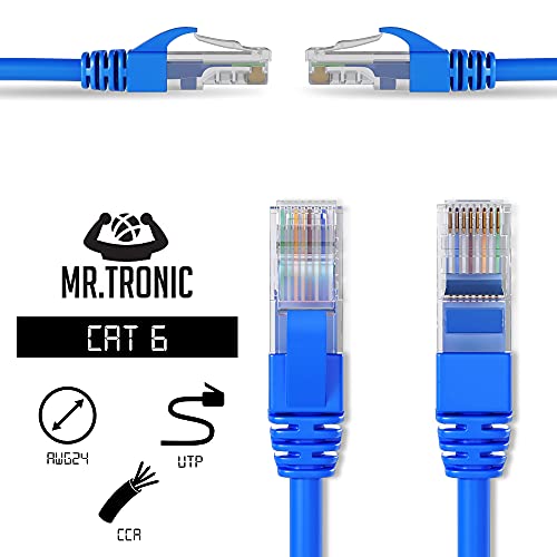 Mr. Tronic 10m Cable de Red Ethernet Trenzado | CAT6, CCA, UTP | Conectores RJ45 | LAN Gigabit de Alta Velocidad | Conexión a Internet | Ideal para PC, Router, Modem, Switch, TV (10 Metros, Azul)