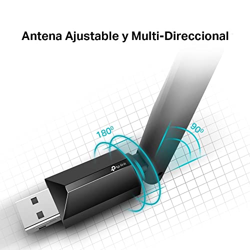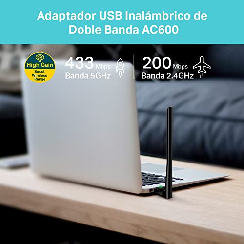 TP-Link Archer T2U Plus - Adaptador wifi usb 5G & 2.4G Hz, Antena Wi-Fi AC 600 Mbps, Doble Banda con Antena Externa y Señal Potente, Turbo 256QAM, óptimo para Teletrabajo