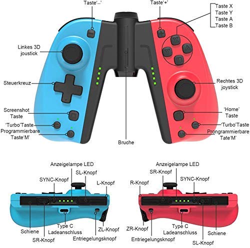 JOYSKY Mando para Nintendo Switch,Bluetooth Controlador,somatosensorial de 6 Ejes, Turbo función Ajustable, Motor de Doble vibración, Joystick multifunción para Juegos de Nintendo Switch