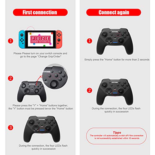 - Conexión: ECHTPower mando inalámbrico es totalmente compatible con Switch y Switch Lite. El método de conexión es muy sencillo, solo necesita 5 segundos para conectar una conexión Bluetooth estable con el interruptor, entonces podrá disfrutar de los juegos en cualquier momento y en cualquier lugar